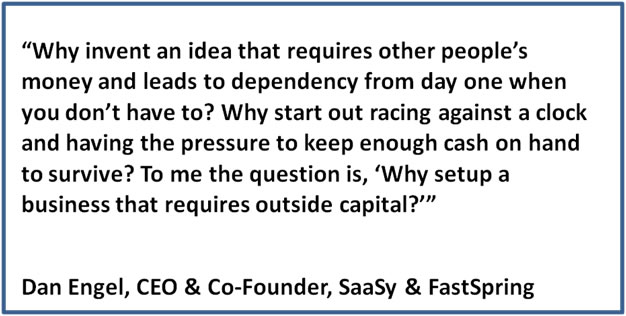 “Outside capital just doesn’t feel natural or right to me as the way you should start a company; it drives different types of decisions and a different culture than bootstrapping. Most of the best companies in history were bootstrapped, and I think that’s for good reasons. Why invent an idea that requires other people’s money and leads to dependency from day one when you don’t have to? Why start out racing against a clock and having the pressure to keep enough cash on hand to survive? To me the question is, ‘Why setup a business that requires outside capital?’ Not enough entrepreneurs think this way, in my view.